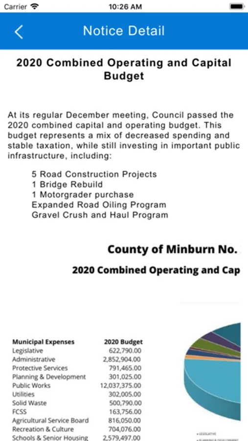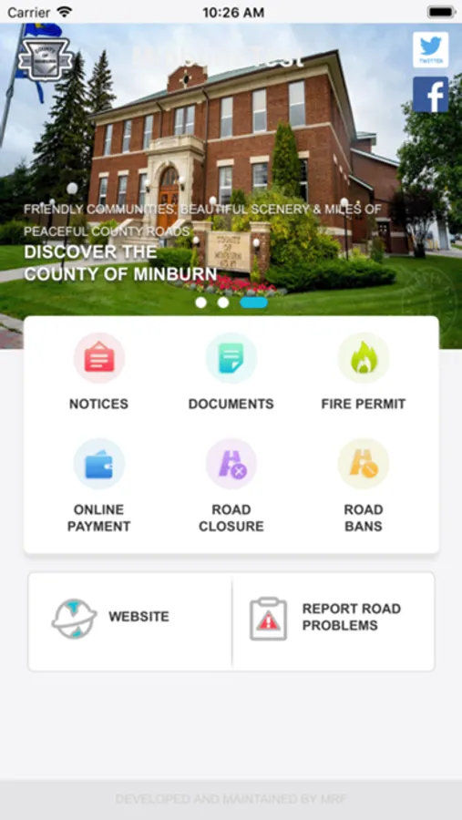 The Minburn County app provides County residents with County notices, Council meeting minutes, documents, road closure, road ban and other information. Residents can also report road issues to County through the app.