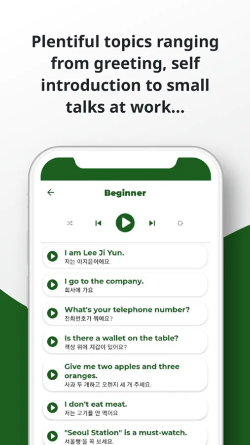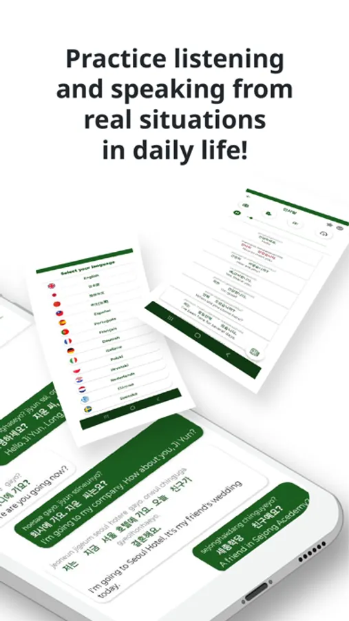 "Learn Korean - Listening And Speaking" is one of PORO’s ongoing apps for self-learners who want to speak Korean easily and effectively. With 750 daily dialogs, a list of lessons with various topics from greeting, introduction, shopping, business conversation, family talks, etc…. It's suitable for all Korean learners from beginner to intermediate and advanced learners to practice speaking Korean.