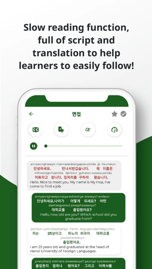 Enjoy practicing Korean while driving or traveling…, you just need to turn on the app and click on playlist mode.