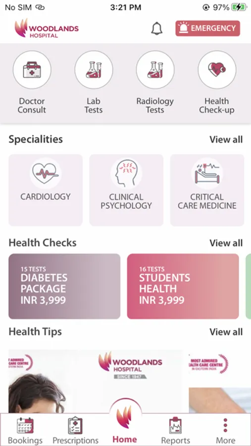 Woodlands Hospital's MyWoodlands application helps its customers to connect with Woodlands Hospital digitally to book appointments, book test, receive alerts related to appointments, maintains profile, emergency and medical contacts etc.