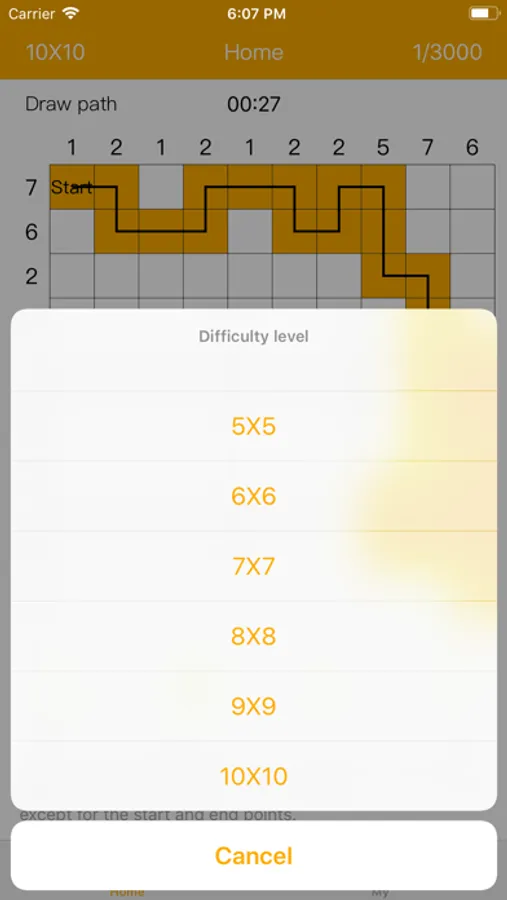 2.Connect passing lattices with horizontal or vertical lines, starting from the starting point to ending.