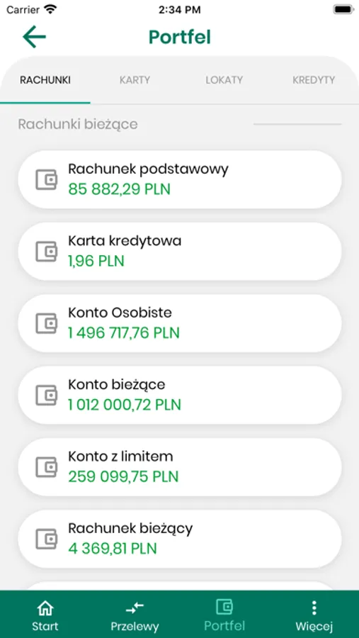 - prezentowanie rachunków, kart, lokat i kredytów klienta,