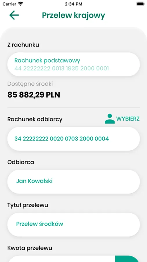 - wykonywanie przelewów krajowych, własnych i doładowań telefonów,