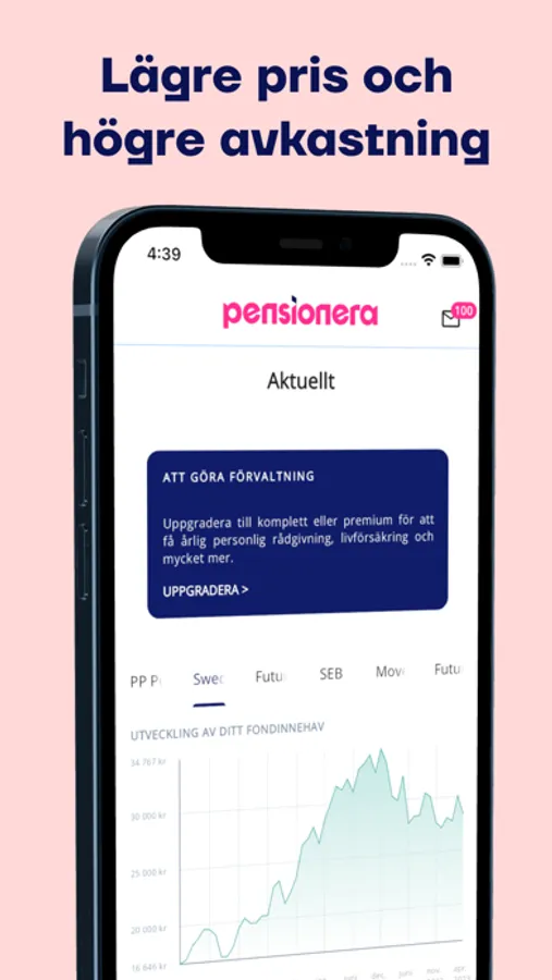 Pensionera hjälper dig att få en översikt över var dina pensionspengar finns, hur mycket du kommer att få varje månad, och hur du kan förbättra din pension. Genom appen kan du få en prognos, genomföra fondbyten, och läsa om hur pension fungerar. Du kan också boka möten med våra licensierade rådgivare för att genomföra en fullständig genomgång av din pension.