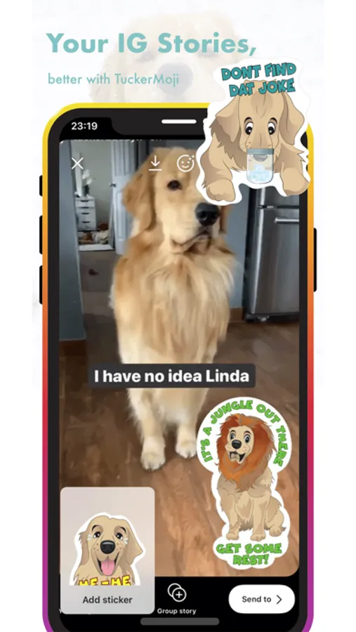 ヅ Open the app, select the Tucker emoji and share it wherever you like