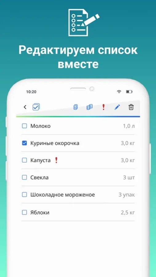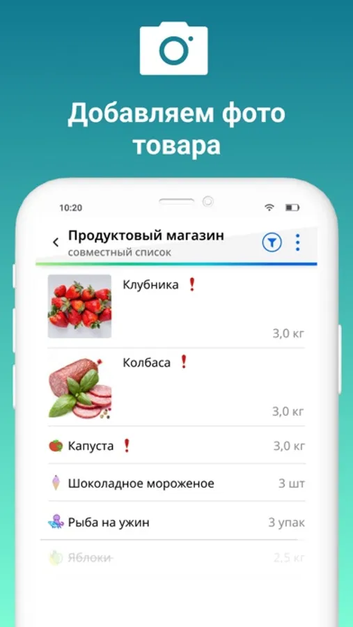 2. Общий список покупок с близкими и друзьями: