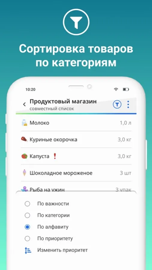 5. Можно составлять списки покупок по целям: