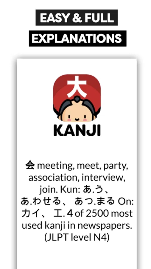 Kanji! Learn kanji with 100 most popular Japanese Kanji. Learn Japanese efficiently. Allocate your valuable time smartly and learn 100 most used characters first. Thanks to that you will benefit from understanding more Kanji characters, quicker.