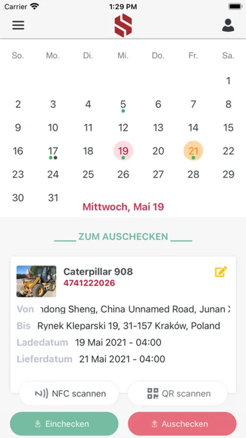 1) Ein- und Auschecken des Geräts (das Gerät selbst wird mit Hilfe von Tags identifiziert)