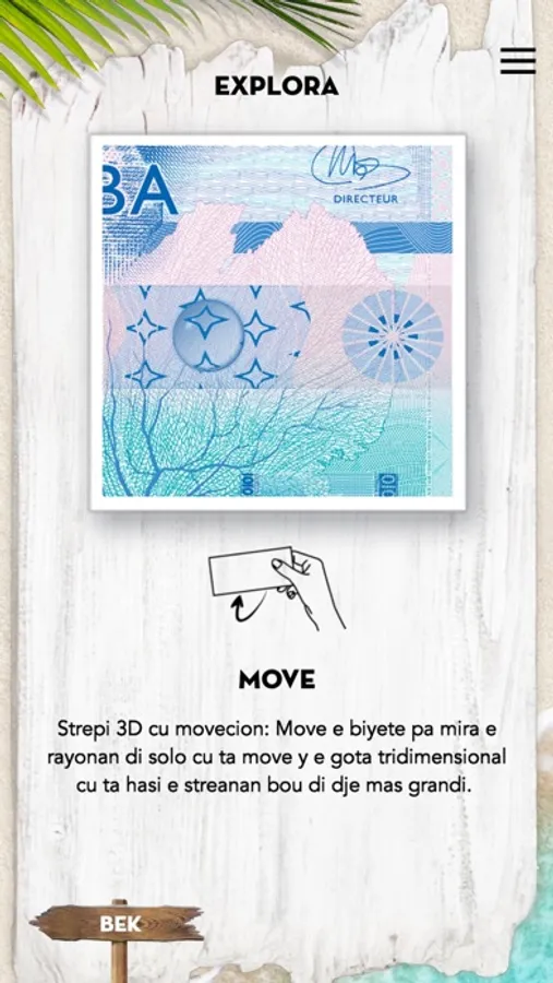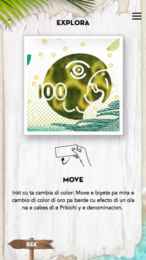 In the mobile application Aruba su florin you can explore the security features of the new florin banknotes. Use your camera to scan your banknote, or enjoy the game, allowing you to get more familiar with the notes in an entertaining way.