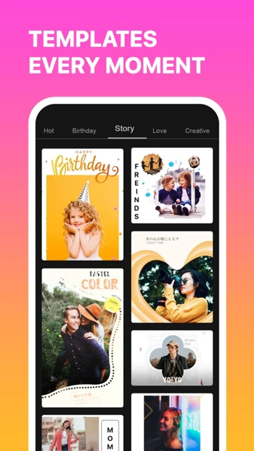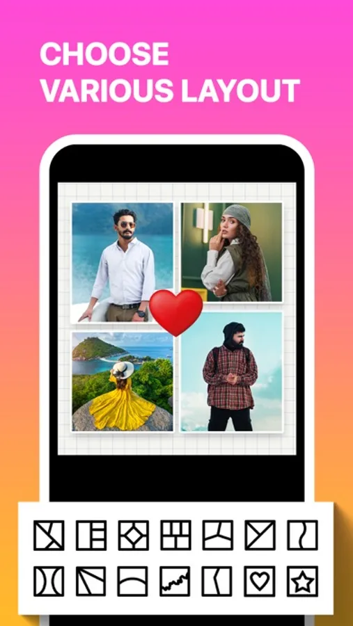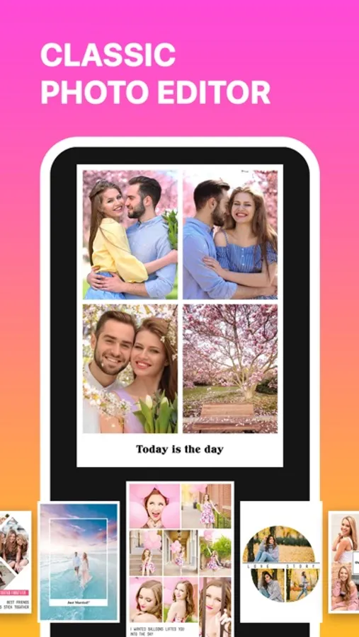Instant layouts and photo grids to quickly arrange photos from your photo gallery.
