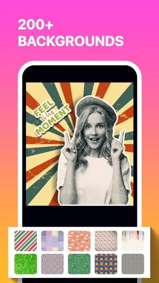 Select beautiful background with full screen ratio to create a scrapbook. You can decorate with pictures, stickers, texts, doodles, and share your scrapbook to Instagram Stories and Snapchat Stories.