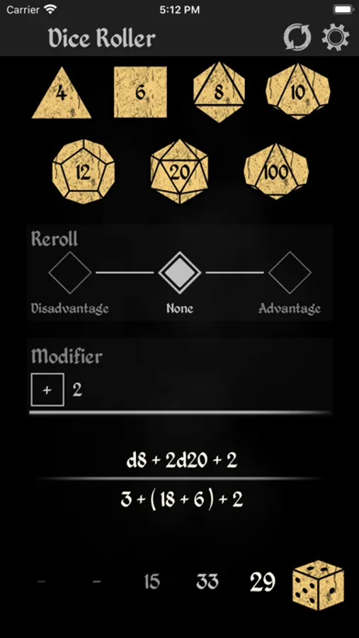- Roll modifier, to manually add or subtract from the roll result