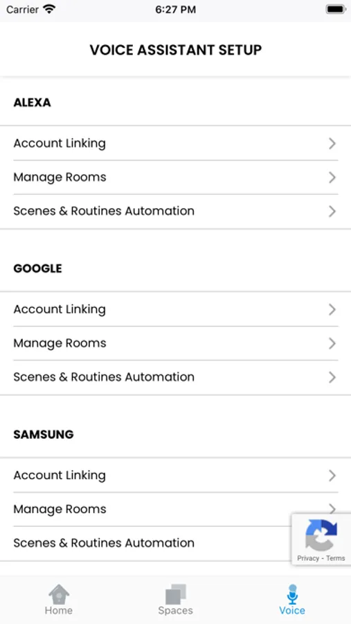 Voice compatibility with Amazon Alexa, Google Assistant, and Samsung SmartThings.