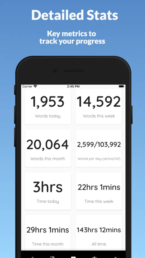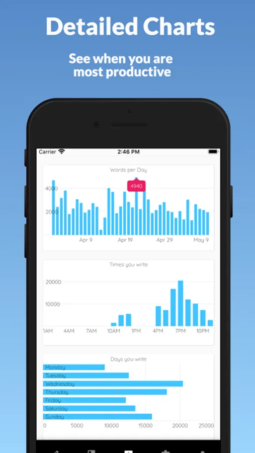Get motivated, with detailed stats and charts on your writing progress. See which days and hours you’re most productive.
