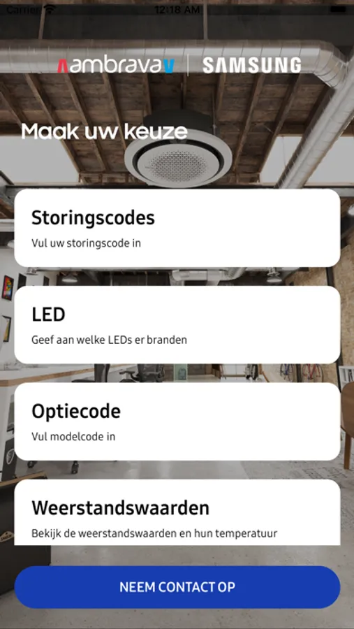Met de Ambrava Service App is het mogelijk om op diverse manieren storingscodes en optiecodes van Samsung warmtepompen, WTW-ventilatie en airconditioningsapparatuur te achterhalen. Hiermee kun je op eenvoudige wijze een storing analyseren en oplossen.