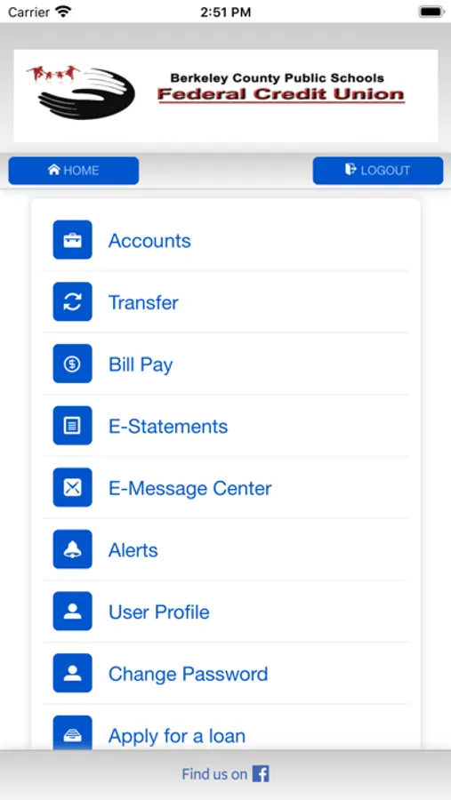 Mobile banking application for Berkeley County Public Schools Federal Credit Union.