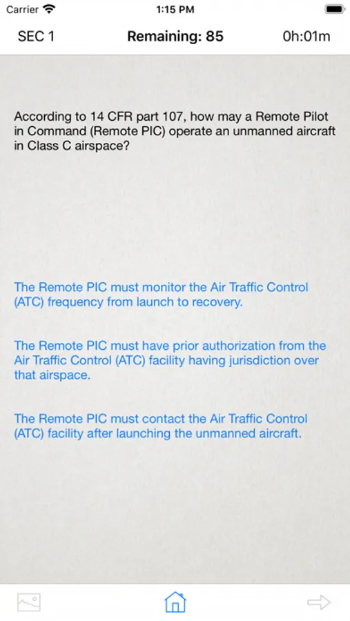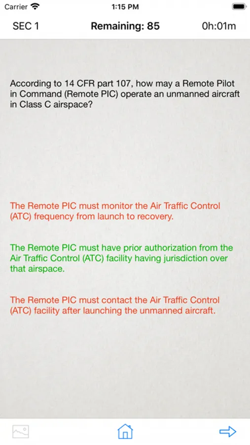 Test Mode - Simulates the test you are going to take at a FAA Knowledge Test Center. In this mode, you are asked 60 questions that are pulled from the entire question bank.