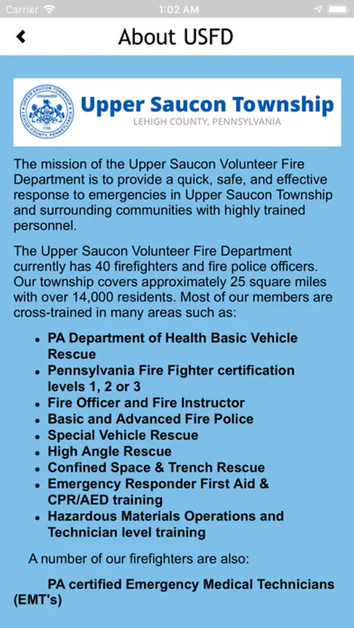 Upper Saucon Townships Community App. This app will provide information, alerts, updates, forms, and maps of the community. The app will be used by residents and employees of the township to stay informed of events and activity in the township.