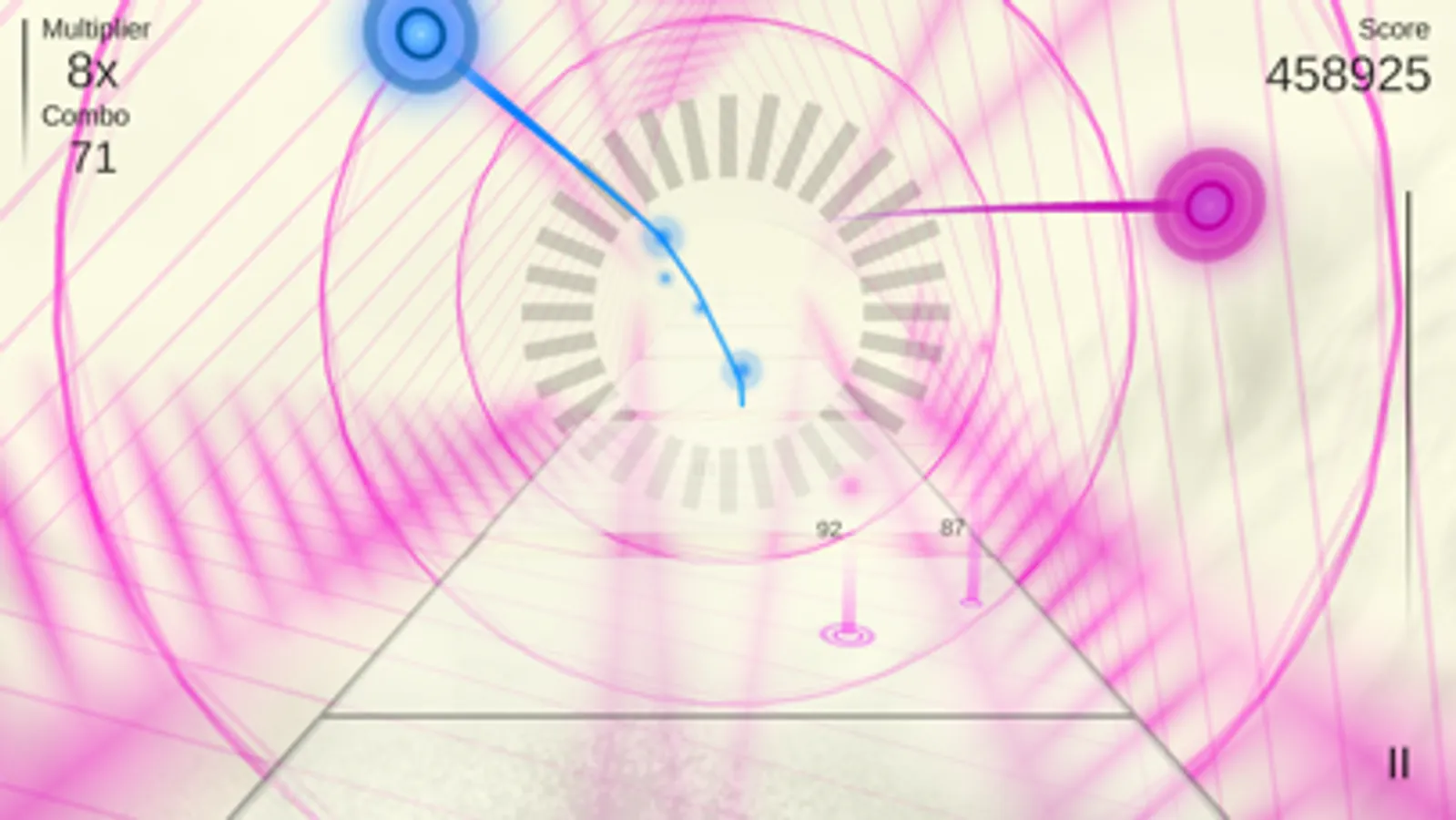 Rhythm Taichi is built from the ground up for mobile devices. A carefully crafted pathing algorithm provides a comfortable yet challenging amount of finger travel for each hand. We've also ruthlessly optimized the game's graphics pipeline to ensure that the game responds quickly and smoothly to your actions.