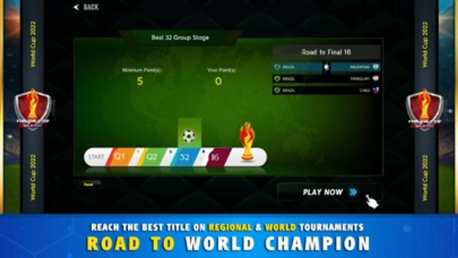 Enjoy exciting and thrilling match, enjoy the atmosphere [national team fans chants + national team football choreography] and master all available skill - like banana kick skill & smart assist - to win all matches!