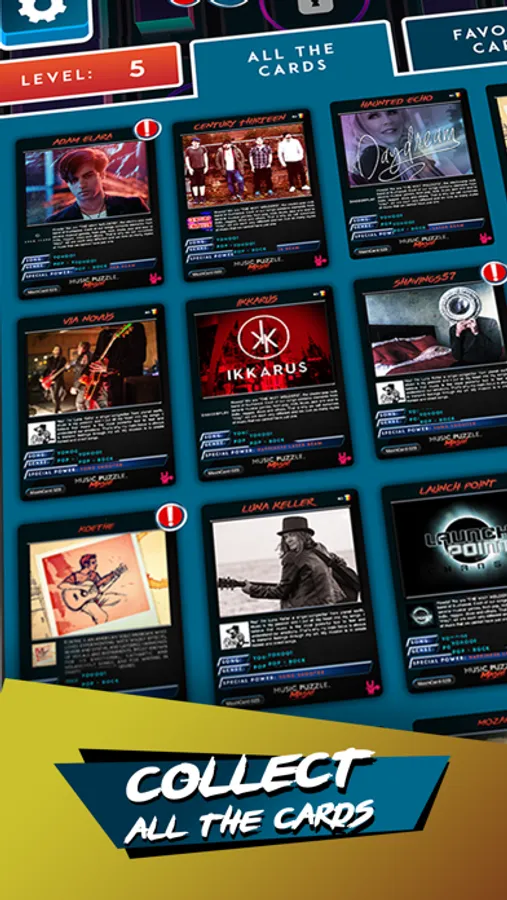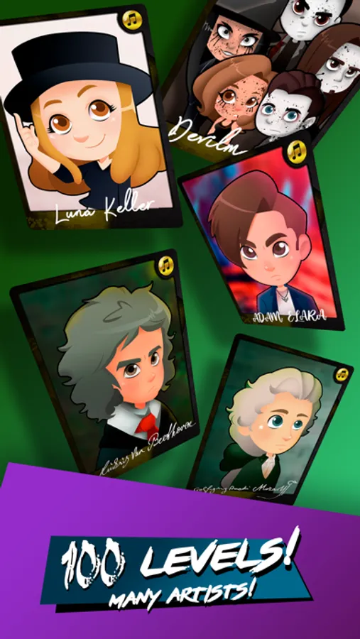 Earn new artists cards and grow your musical collection. Then, collect all of the character cartoon cards and catch them all!