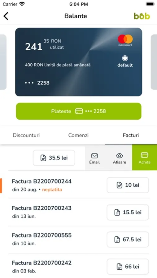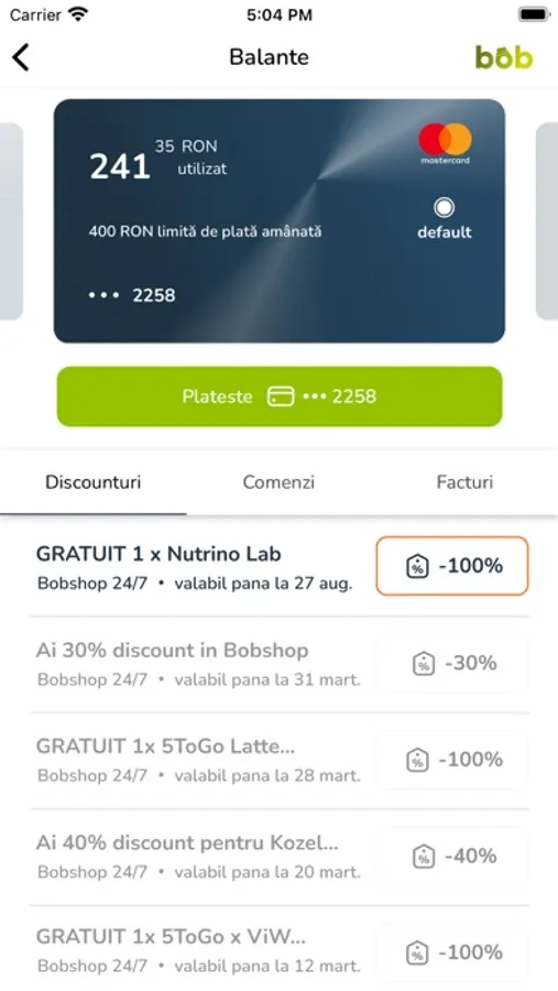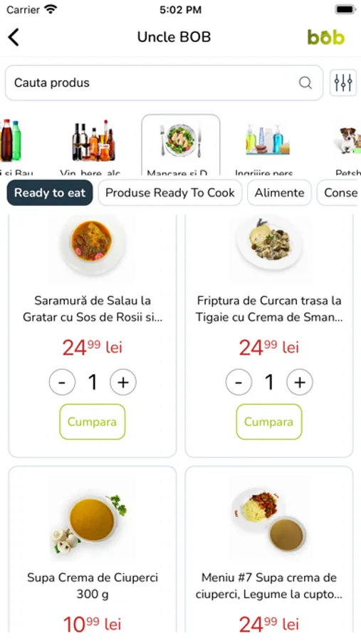 Dar știi că poți face shop în stil smart direct din aplicație? Comanzi ce vrei în BobShop, iar cumpărăturile îți sunt livrate direct în BOB. Scapi de drumurile prin aglomerație la supermarket și de statul la cozi.