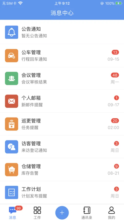 通知消息推送:实时推送任务消息和预警提醒,包括系统通知、短信通知、邮件通知、微信通知等方式,有助于个人合理安排工作计划,及时完成工作任务,保障工作的顺利进行。