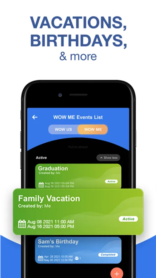• Create a Wow Me Event, set a past or present time frame and we will build you a Highlight Reel to view and share.