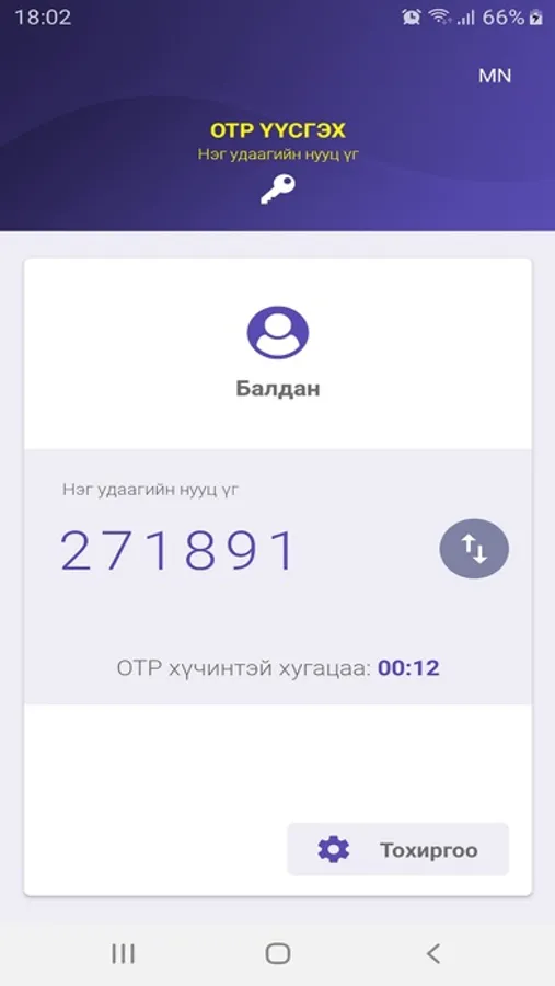 Чингис хаан банкны интернет банкинд зориулсан нэг удаагийн нууц үгийн аппликейшн.