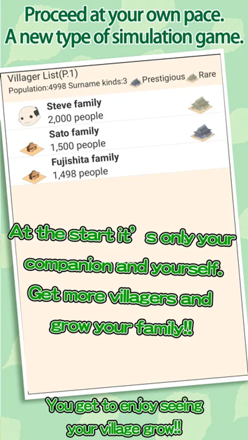 The first villagers are your companion and yourself. From such humble beginnings, will you be able to survive through the Warring-States Period and unify Japan?
