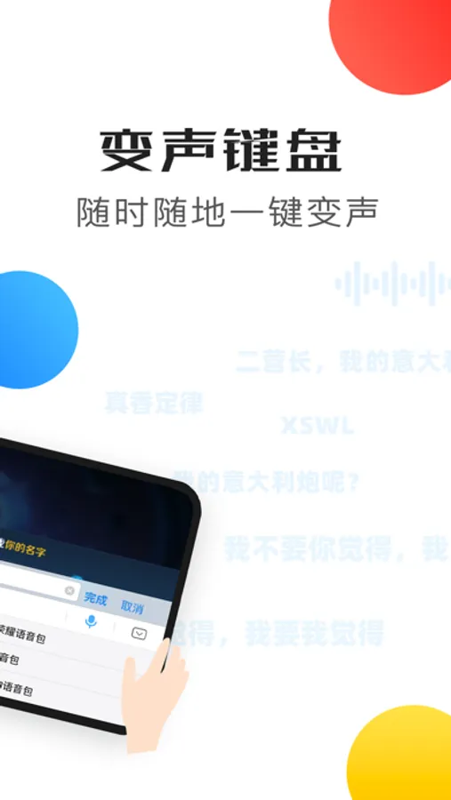 方便快捷的超级变声器,在微信QQ聊天、玩吃鸡王者荣耀中随时变声互动。你,就是场上的开黑变音大师