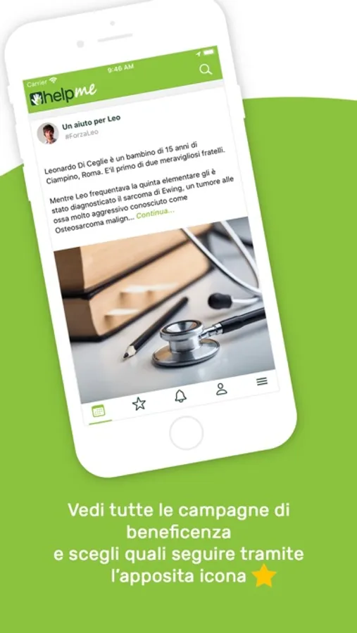 L’app di HelpMe è lo strumento principale utilizzato dal donatore per partecipare in modo attivo alla piattaforma.