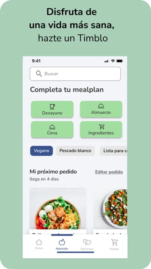 - Comer variado y sabroso; aunque en TIMBLO podrás marcar tus recetas preferidas, ¡deja que nuestro chef te sugiera platos nuevos!