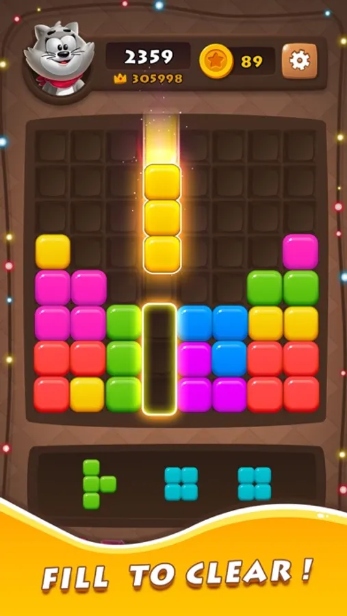 - Try to place blocks in a full vertical or horizontal line to let it destroyed and get more space.