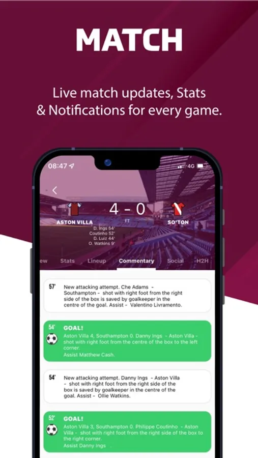 The number one football app for Aston Villa fans! Get your Aston Villa live scores, instant goal alerts, breaking news, transfer updates, match stats, match highlights, fixtures, results, and Aston Villa fan podcasts all in one place.