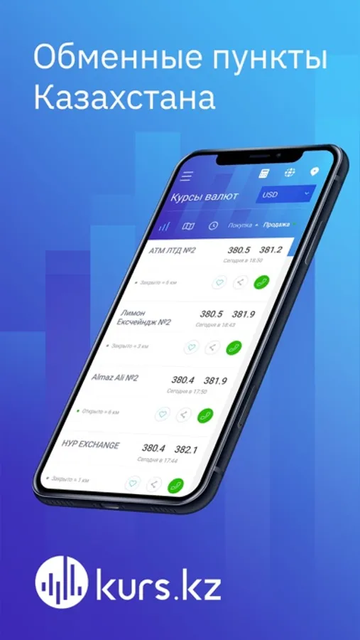Бесплатное приложение Kurs.kz — это самые актуальные курсы валют в обменных пунктах Алматы, Нур-Султана, Шымкента и других городов Казахстана.