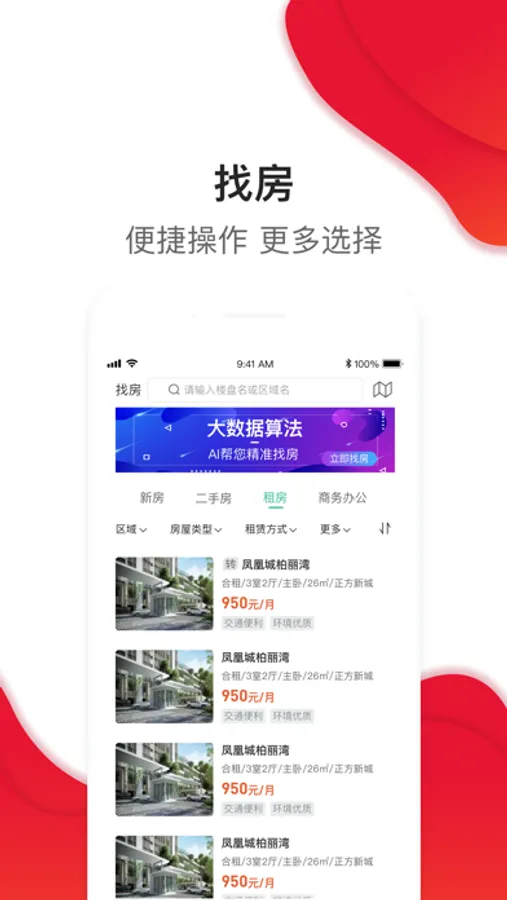 通过智能化数字平台,多方位展现大量、全面、真实的房源信息。在AI找房、房屋估价、智能匹配推荐等板块,我们将通过大数据算法等技术,建立业主模型、需求模型、房源模型,为您智能匹配最佳房源,提高交易效率,降低交易成本。