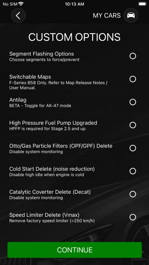 • Switchable Maps On-The-Fly - WORLD'S FIRST SOLUTION FOR BMW B58/B48 - through a simple combination of cruise control buttons you can quickly select between mapping, without the need to reflash vehicle! Support for HPFP included! Hybrids and Gen 2 switchable maps, including all ethanol maps, are under development.