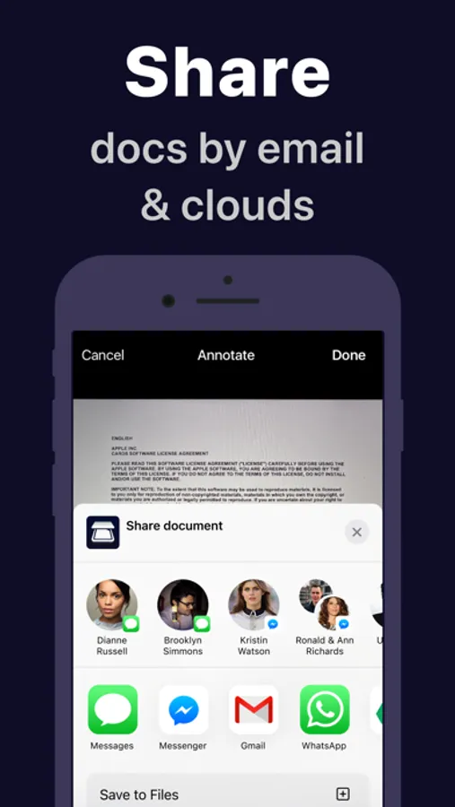 - Share documents to email or clouds