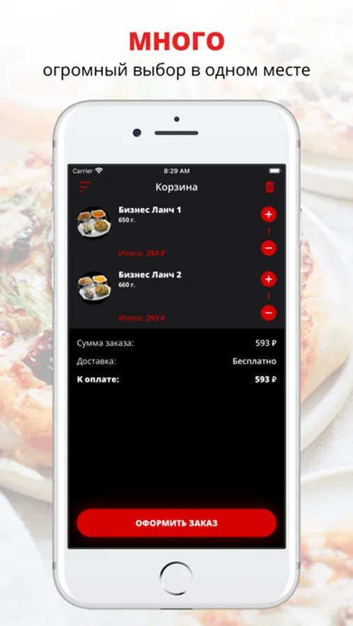 Заказывайте Ваши любимые блюда у нас, и Вы останетесь довольны качеством сервиса. У нас работают профессиональные повара, а курьеры приятно порадуют вежливостью и быстрой доставкой.