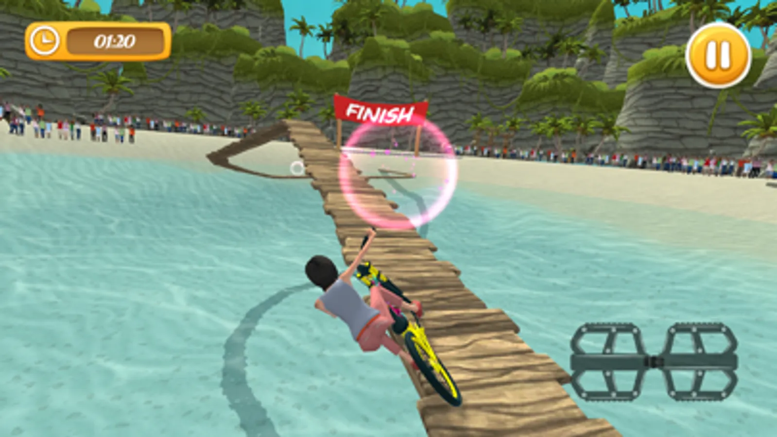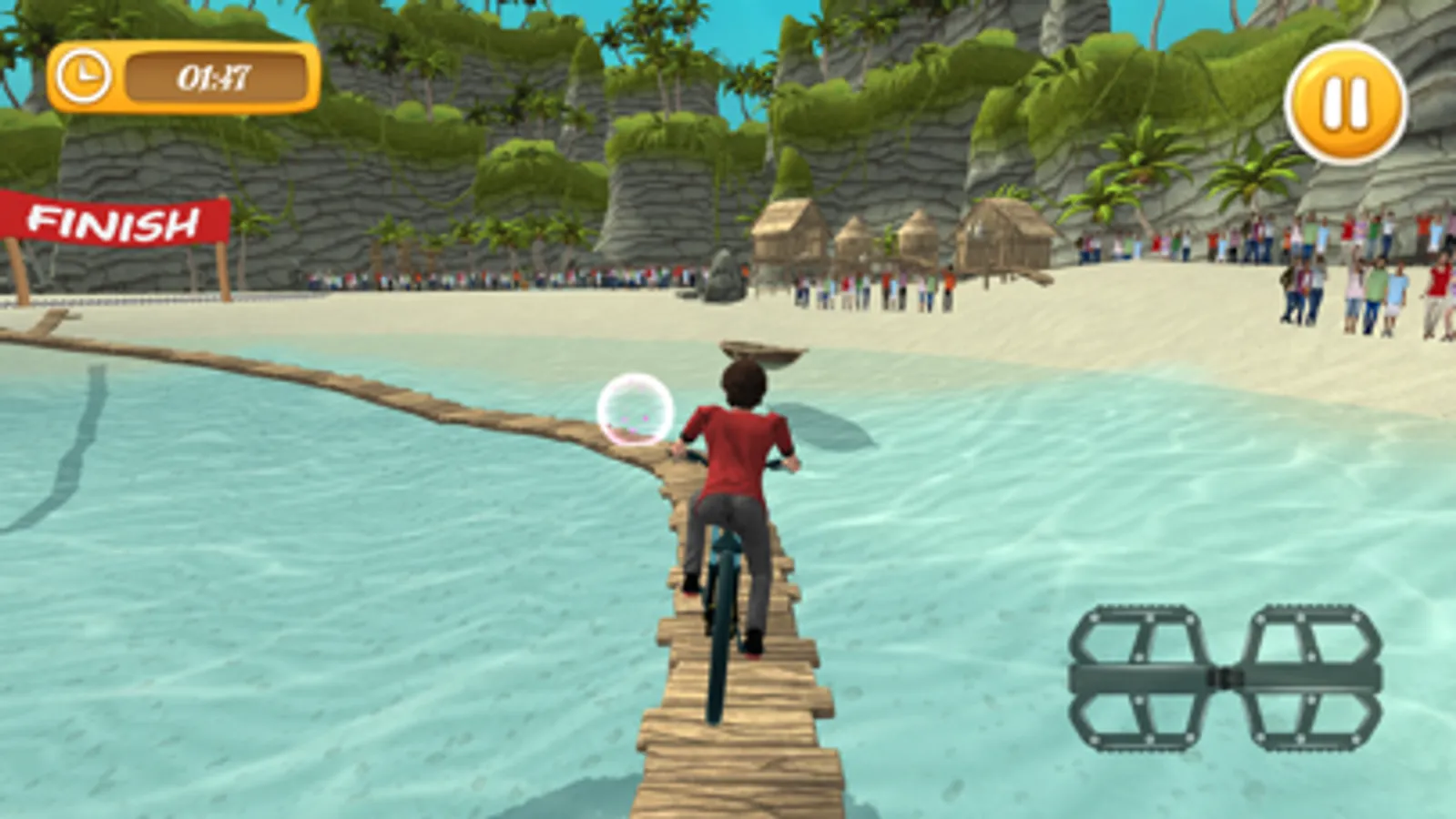 You only need to accelerate your BMX bicycle to cross the wooden bridge over the lake while balancing your bicycle and reach the finish line.