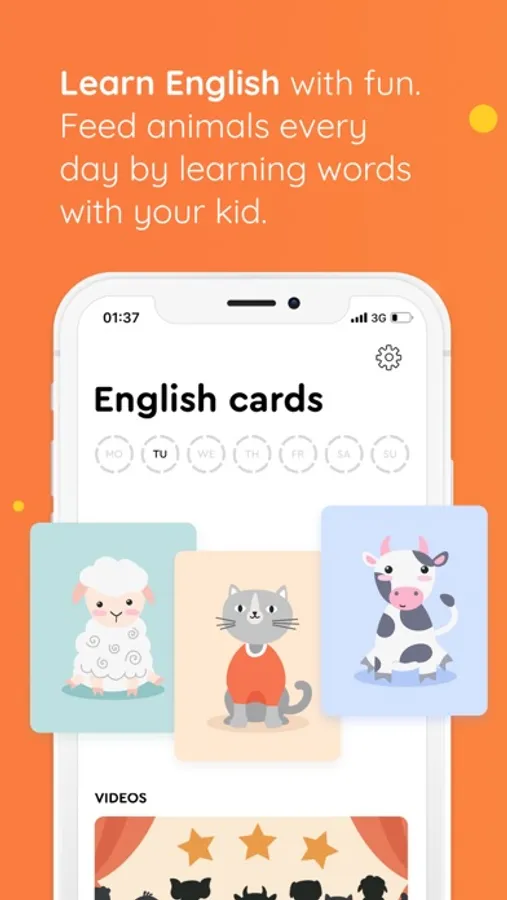 English cards for kids is an application for learning English words with kids (2-6 years).