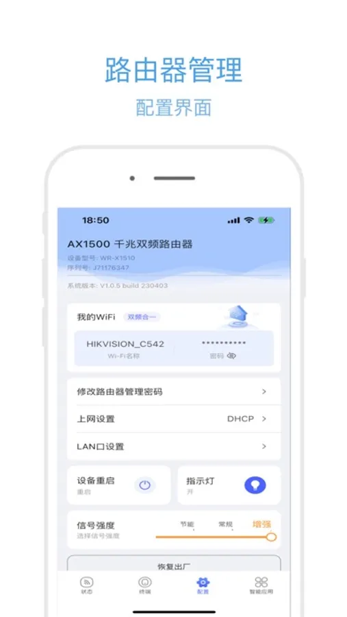 海康WiFi APP是一款海康威视无线路由器配套的手机应用。手机通过WiFi连接无线路由器,可以实现对无线路由器的多种管理,简单智能。