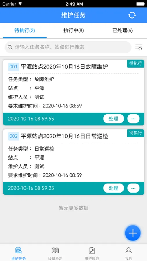 通过平台手机终端实现现场运维打卡;在处理过程中,对任务情况进行确认,根据提供的维护上报模板,自动关联本次维护任务类型(巡检保养/故障应急维护),供维护人员填写维护总结,输入文字记录现场情况,如设备问题情况描述、数量等故障报修情况,并用图片拍摄及记录现场问题情况,上报问题,实现任务实时填写上报。