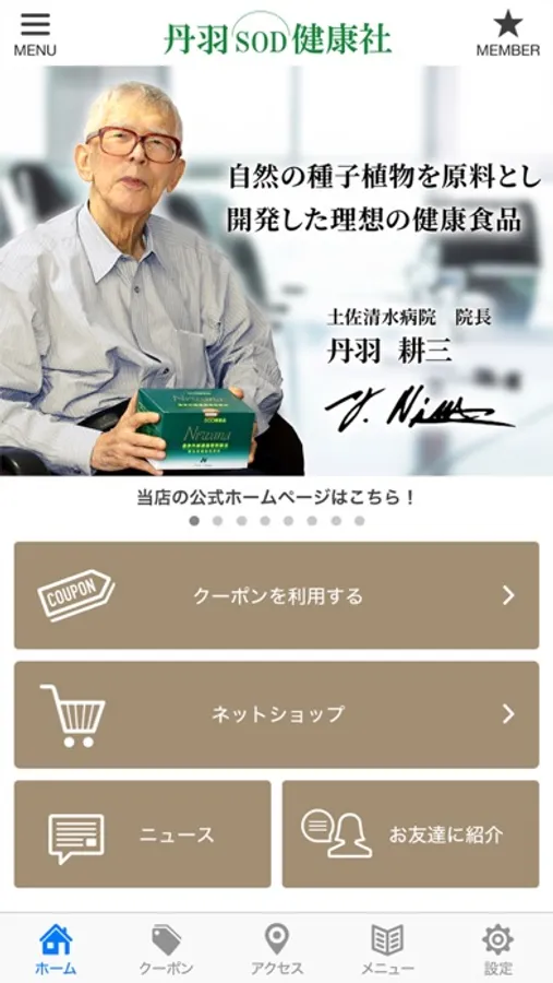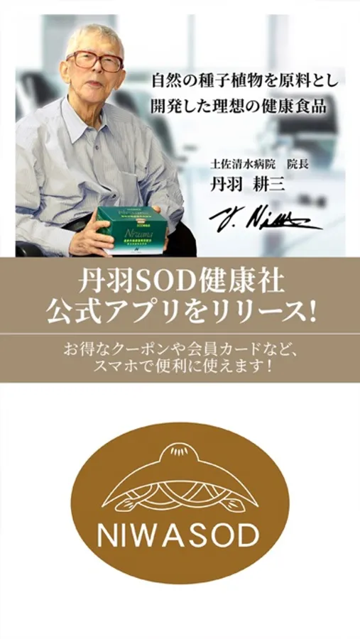 土佐清水病院、院長「丹羽耕三」医学博士開発のSOD酵素丹羽SOD食品Niwana(ニワナ)正規品取扱店、丹羽SOD健康社専用アプリです。
