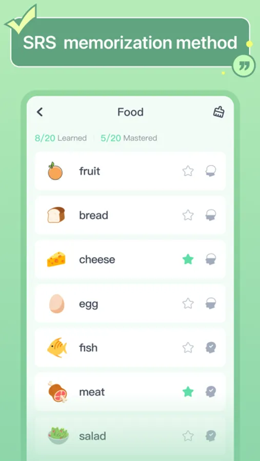 After each session you’ll see your daily progress with a detailed report of all the words that you studied, including the words that you've already mastered by clicking "Senior filter".