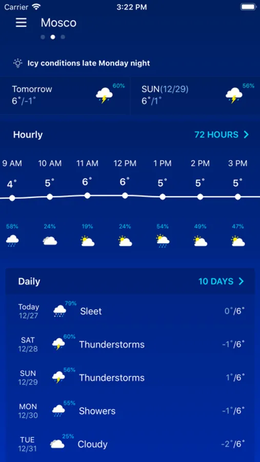 - Offer today's weather, tomorrow's weather, future 10 days' weather, and 72 hours' weather