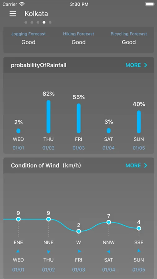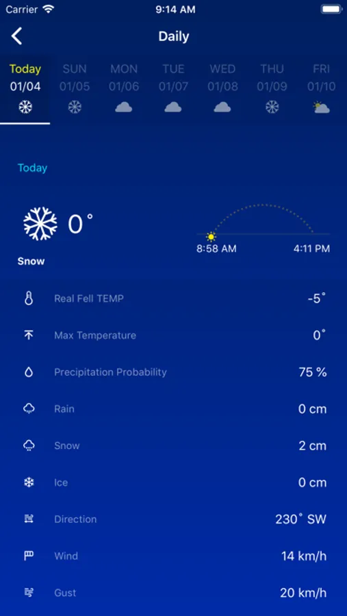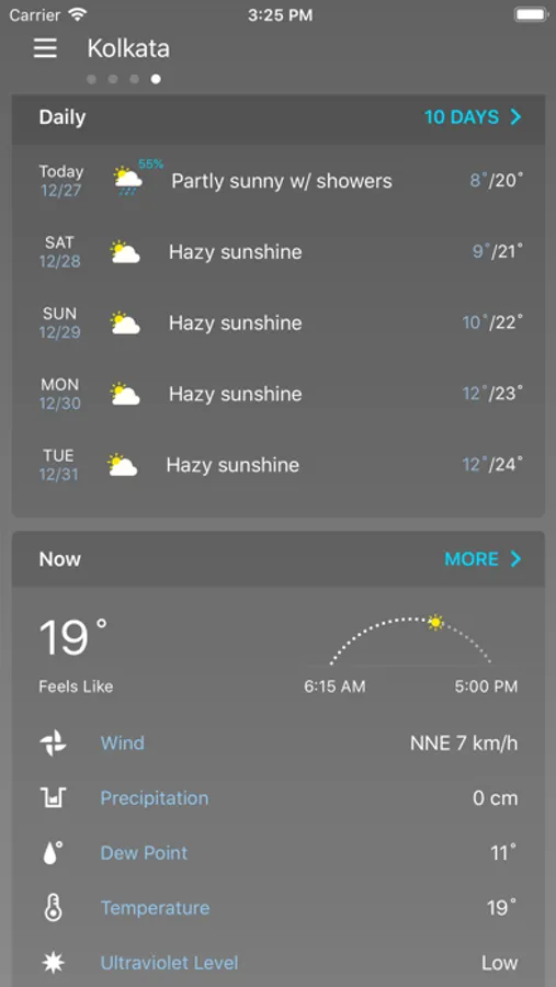 - Various weather information: temperature, wind, humidity, dew point, precipitation, visibility, pressure, sunrise, sunset, air quality, ultraviolet
