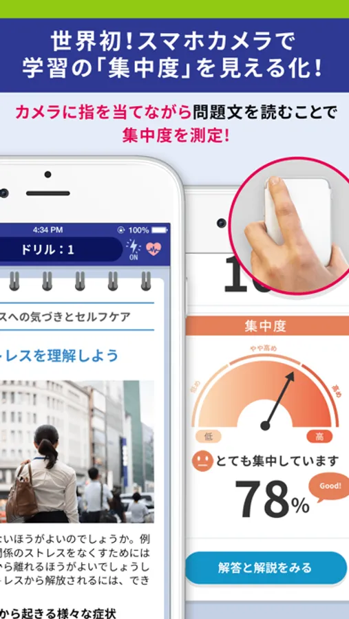 ②世界初!スマホカメラで学習の「集中度」を見える化し、学習の取り組み方の効果測定ができます。